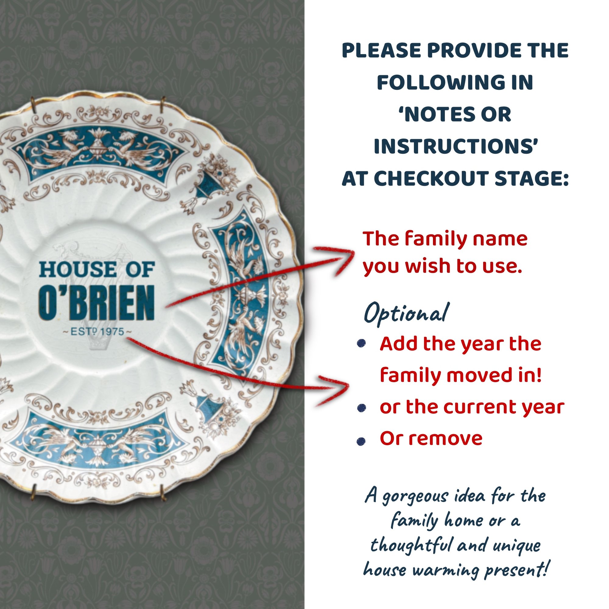 PROVIDE ALL DETAILS IN 'NOTES OR INSTRUCTIONS' AT CHECKOUT STAGE.